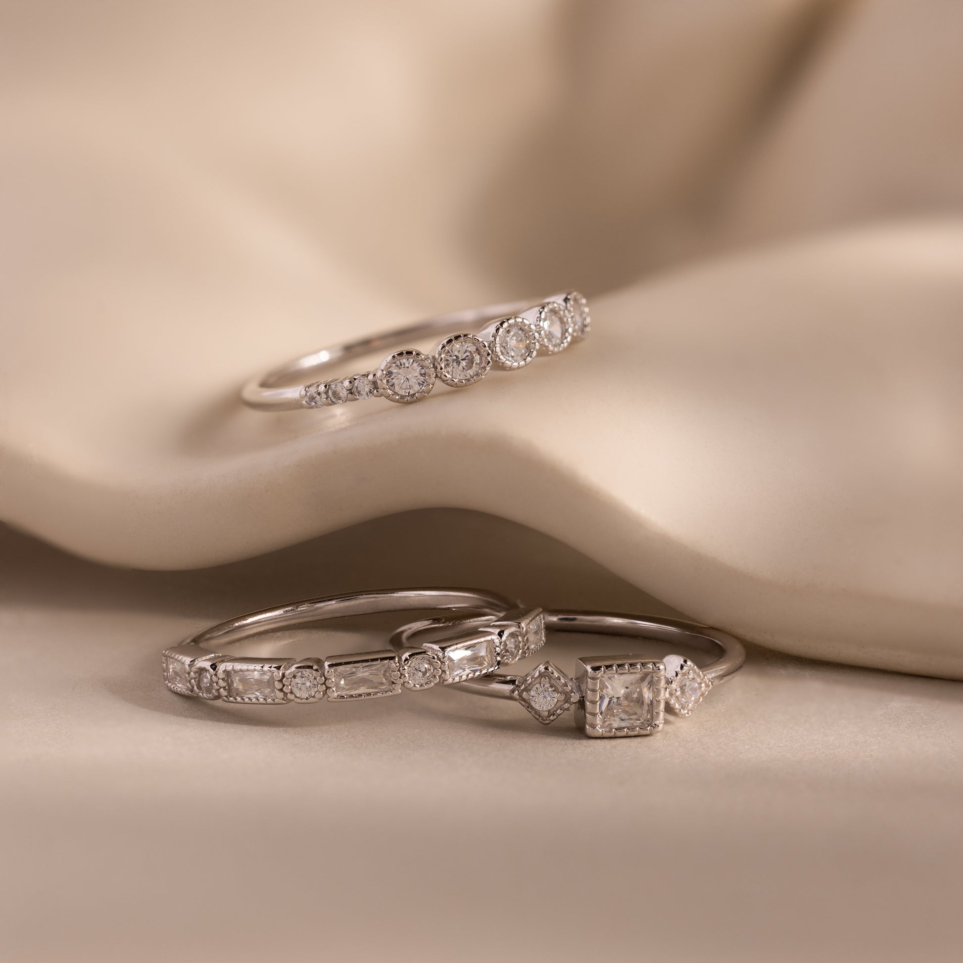 Introducing our Art Deco Diamond Ring Set, the perfect blend of sparkle and timeless charm. Inspired by the elegance of the Art Deco era, these rings are a must have for anyone looking to add a touch of vintage glamour and brilliance to their style.