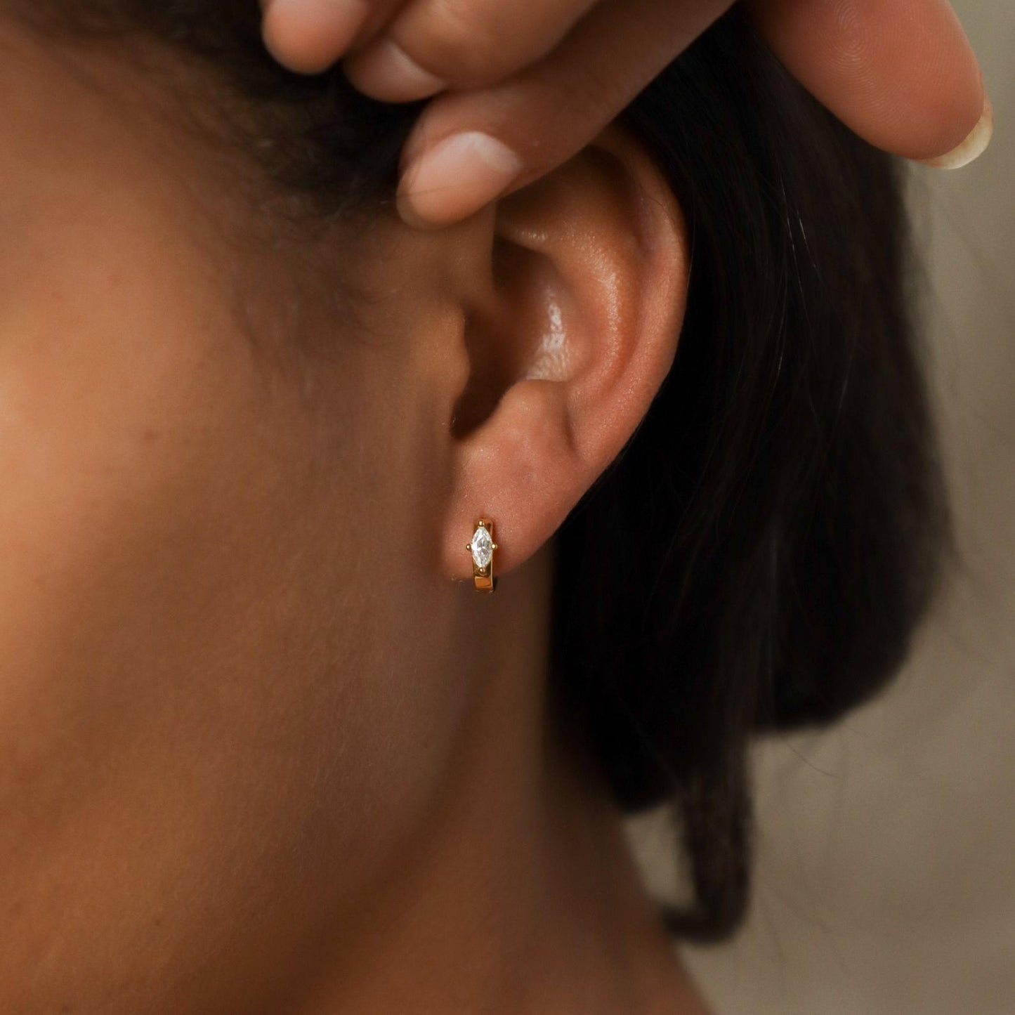 • Featuring 4mm CZ Marquise Diamond Huggie Hoops