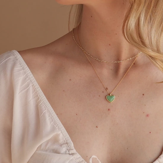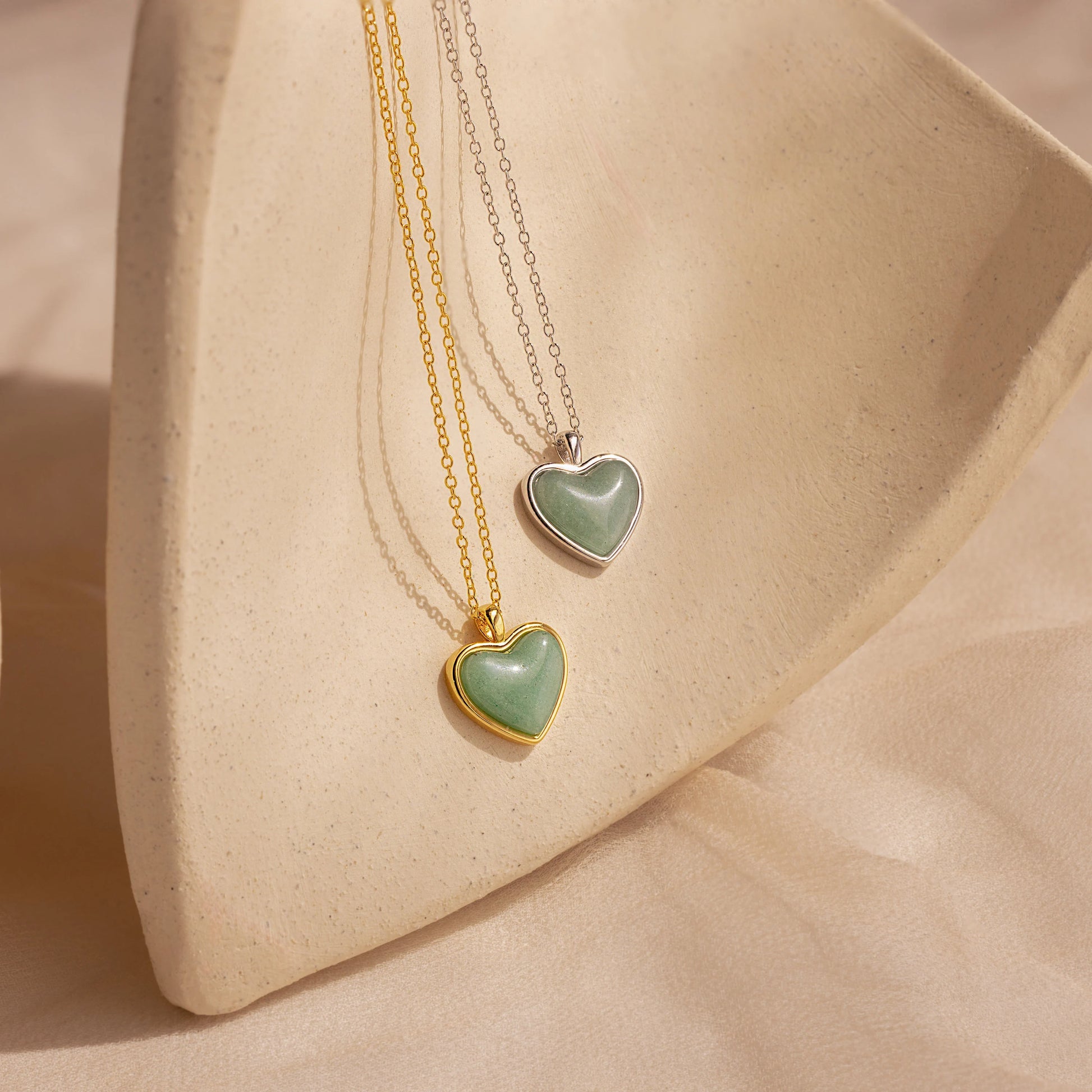 Our Aventurine Heart Necklace features a heart-shaped pendant crafted from an enchanting aventurine gemstone. Perfect for adding a pop of color to your everyday look or as a heartfelt gift, this necklace is sure to add a little love and luck to any jewelry collection ♡