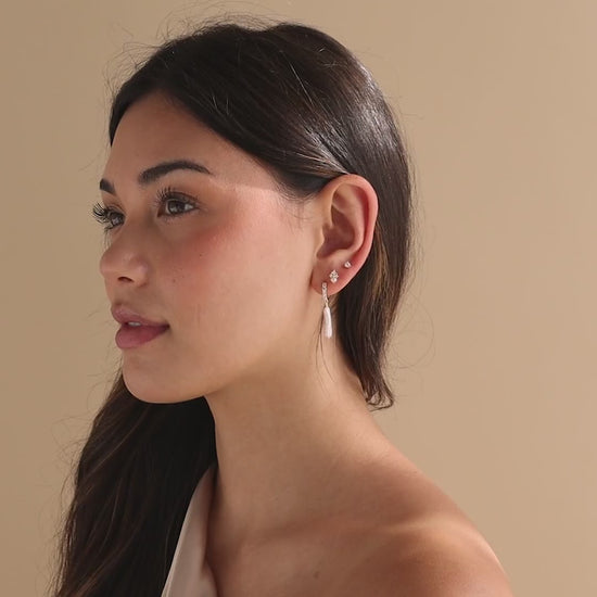 Introducing our Baroque Pearl Pave Huggies, reminiscent of enchanting summer nights under starlit skies. These huggie hoop earrings feature a Pave Diamond setting and a long dangling Baroque Pearl charm, capturing an elegant and romantic vibe 🤍