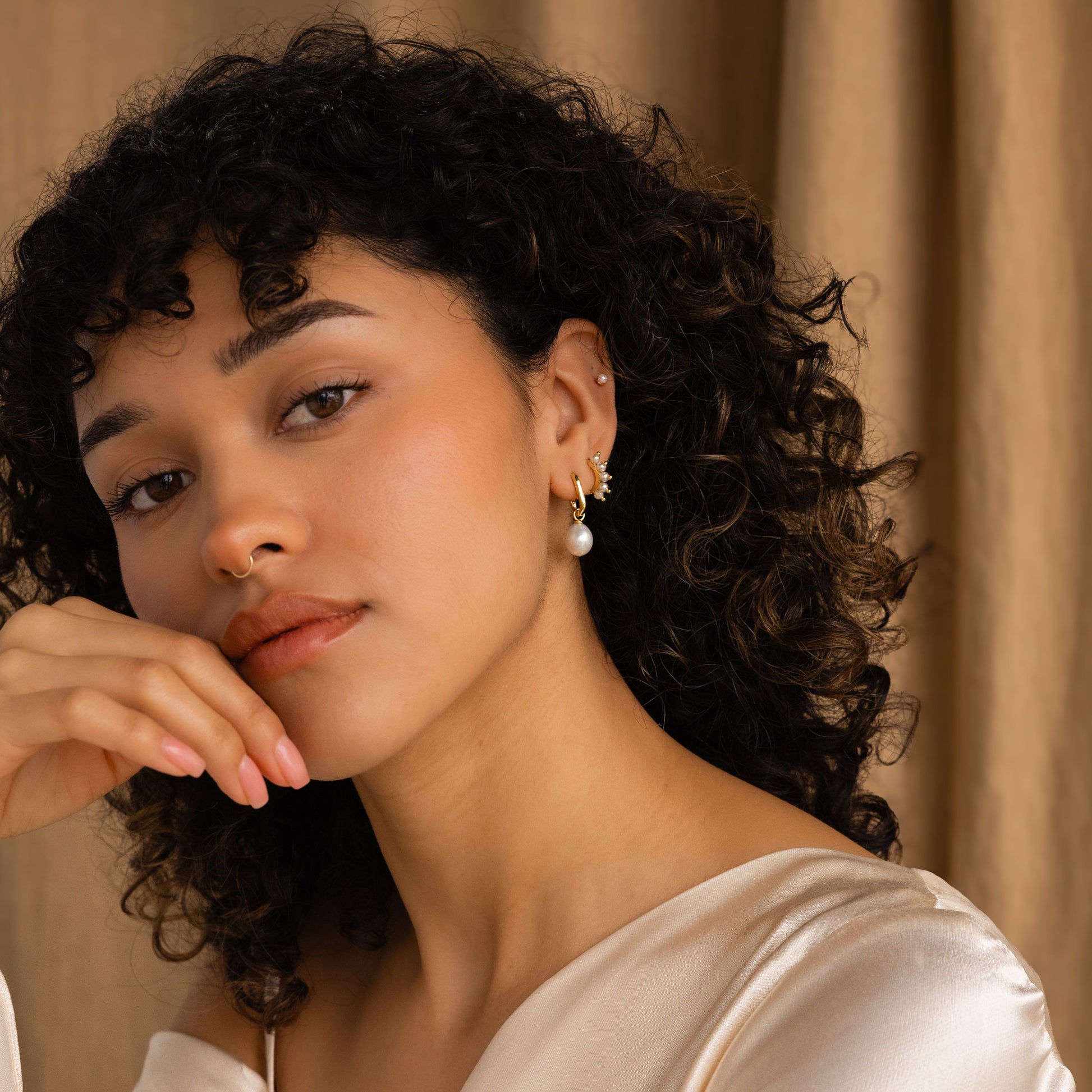 Our Beaded Pearl Huggies blend the timeless allure of pearls with a modern hoop design, creating a stylish and versatile accessory. Each hoop is adorned with a stack of luminous pearls, adding a touch of elegance and texture. Perfect for day or night, these unique earrings elevate any look with a modern twist on traditional pearl jewelry.