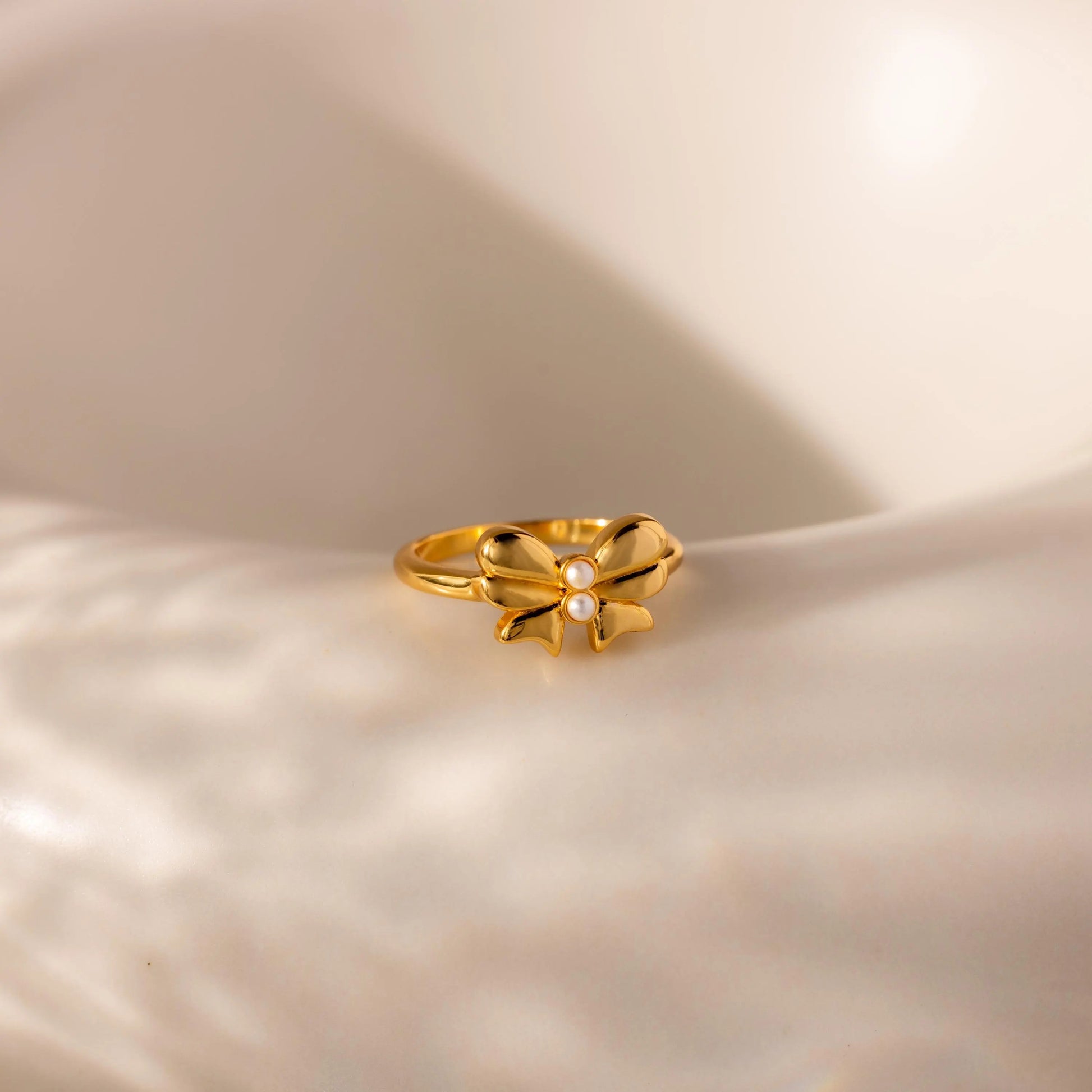 Sweet, polished, and undeniably pretty, our Bow Ring pairs a delicate gold bow with two tiny pearls for the perfect feminine flourish. A subtle statement with vintage-inspired charm, it’s made to shine on its own or stack effortlessly ✨
