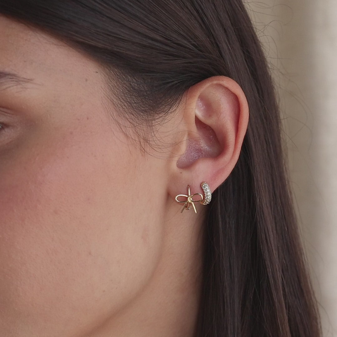 • Featuring ~9.5x12mm Bow Charm Huggie Hoop Earrings