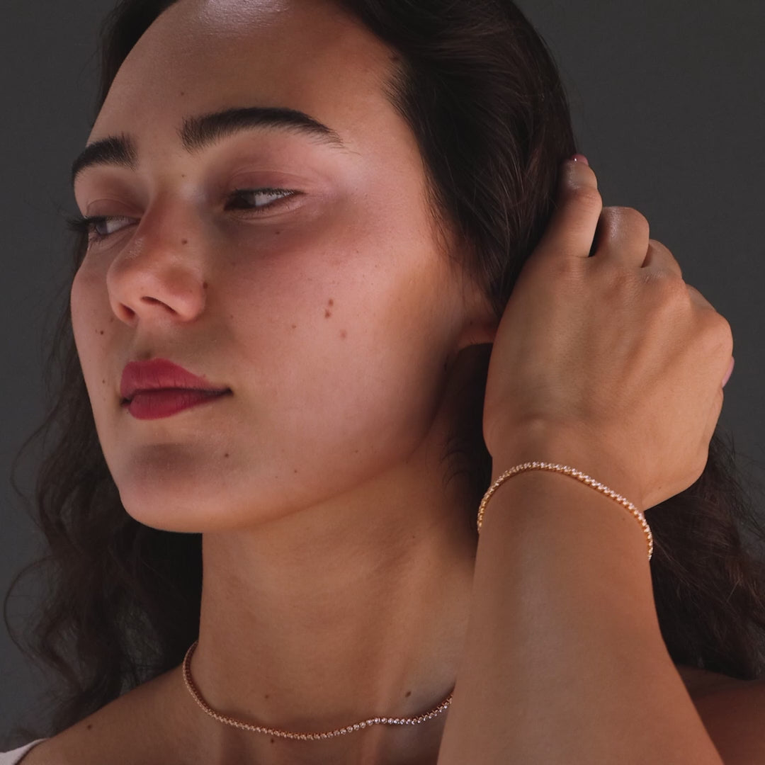 Timeless sparkle meets modern elegance in our Dainty Diamond Bezel Tennis Necklace & Bracelet Set. Featuring a coordinated pair of bezel-set diamond pieces, this set delivers effortless sophistication whether worn together or separately. A stunning gift for anniversaries, milestone moments, or the holiday season—because nothing says “you’re unforgettable” like diamonds. ✨