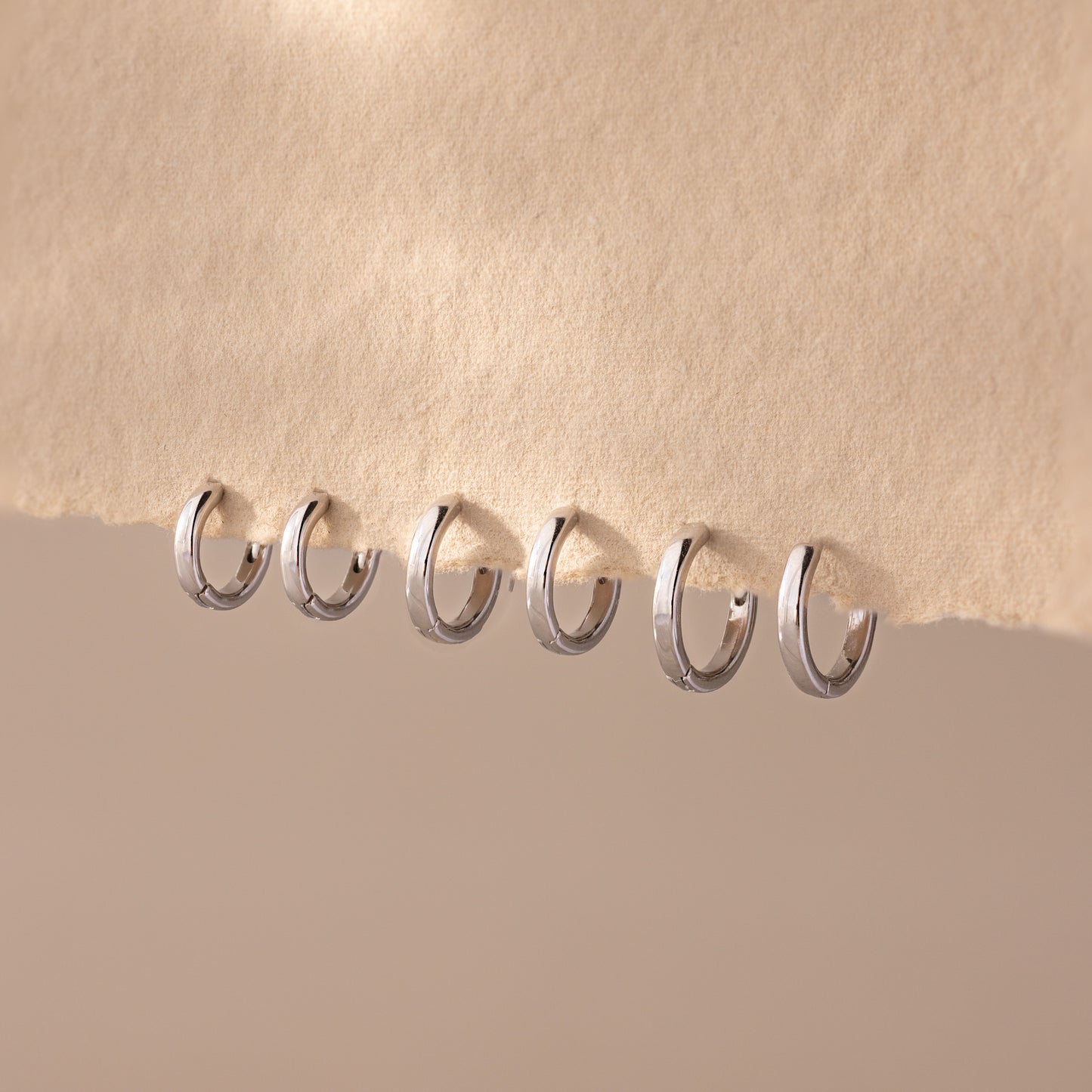Elevate your everyday look with our Dainty Huggies – a trio of sleek, minimalist hoop earrings designed for effortless stacking and timeless style. Available in 6mm, 7mm, and 8mm sizes, these huggie hoops are perfect for lobe and cartilage piercings.