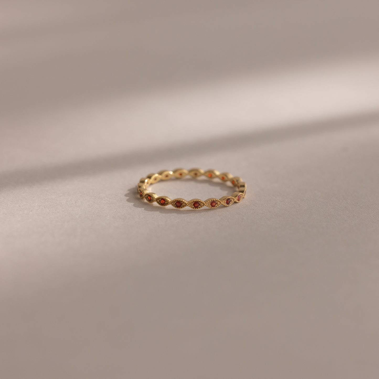 • Dimensions: 1mm CZ Garnet Stones | 3mm Band