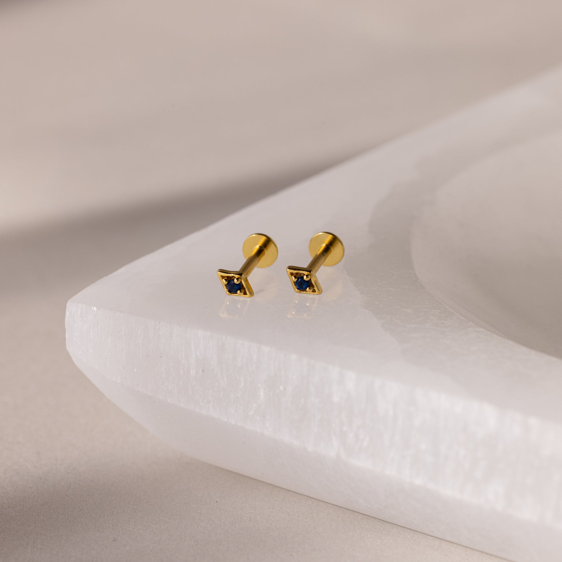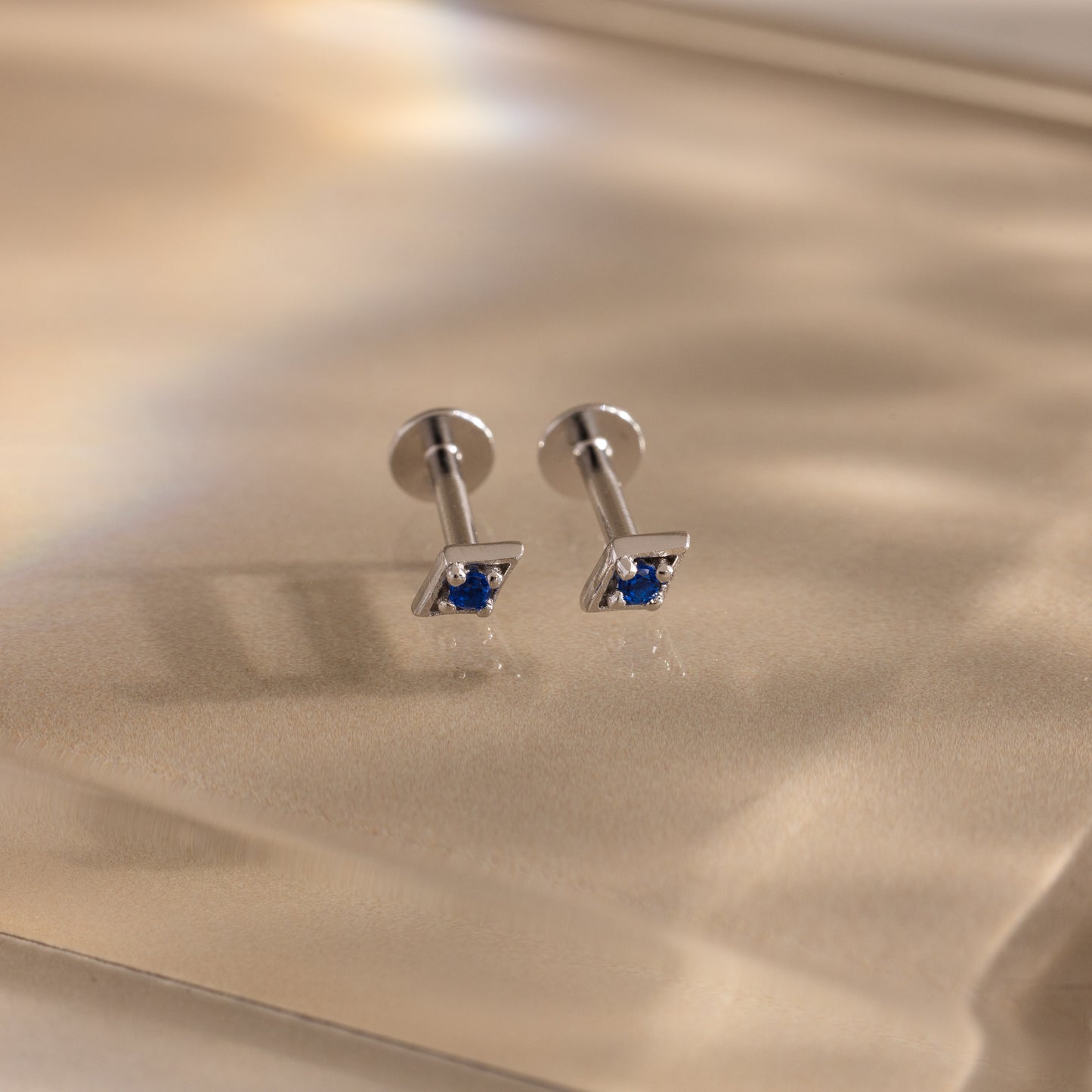 Celebrate your birth month in dreamy style with our Geometric Sapphire Flat Back Studs. Designed in a sleek diamond shape and customizable with your choice of birthstone color, these earrings are a perfect way to sparkle through every moment, from birthdays to everyday adventures.