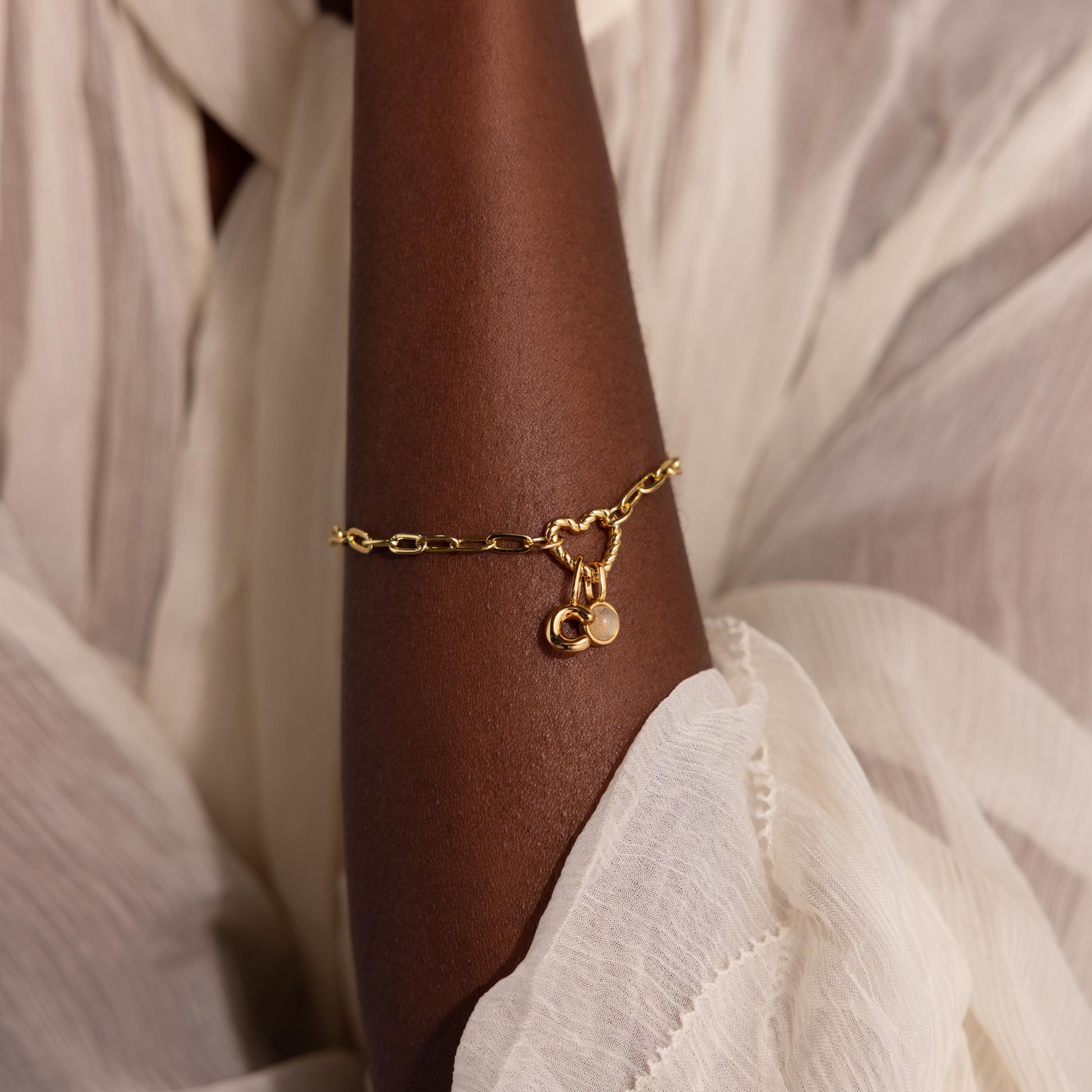 Make a bold yet sweet statement with this Heart Carabiner Paperclip Bracelet, featuring a modern chain design and a heart shaped clasp. This bracelet comes with two interchangeable heart charms, one smooth and minimal, the other with a ribbed texture, so you can switch up your look depending on your mood or style in every location.