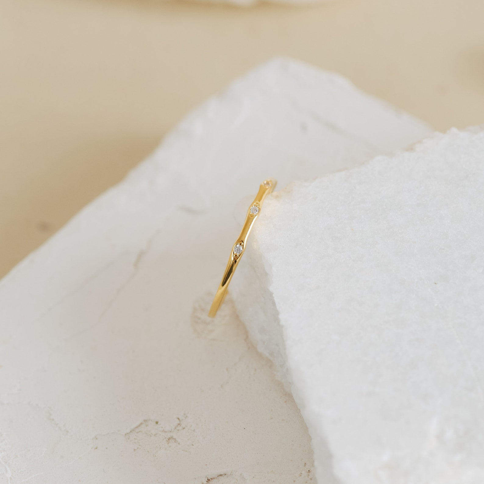 Sometimes when you want to keep it minimalistic, but still make a subtle statement, nothing is more perfect than the Juliet Diamond Ring. A dainty thin band sprinkled with tiny diamonds for an understated sparkle. Wear this ring on its own or stack with any rings in your collection!