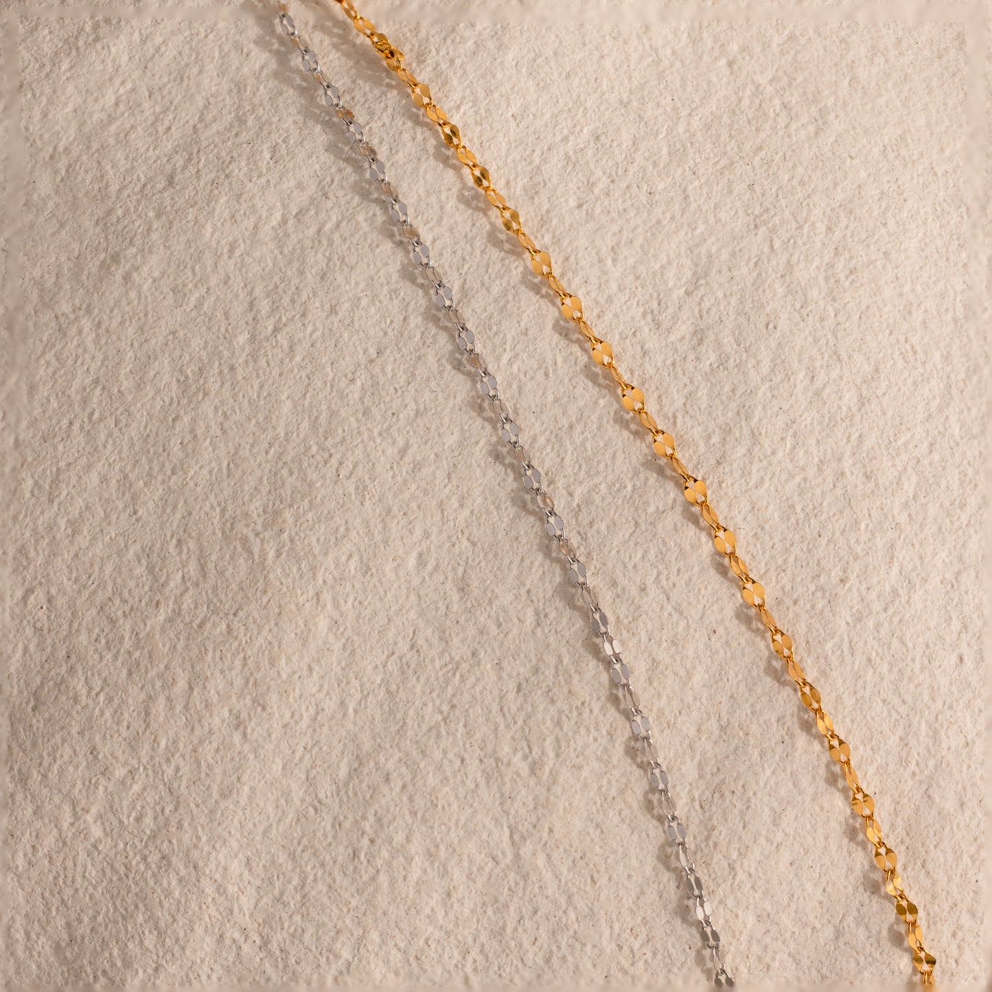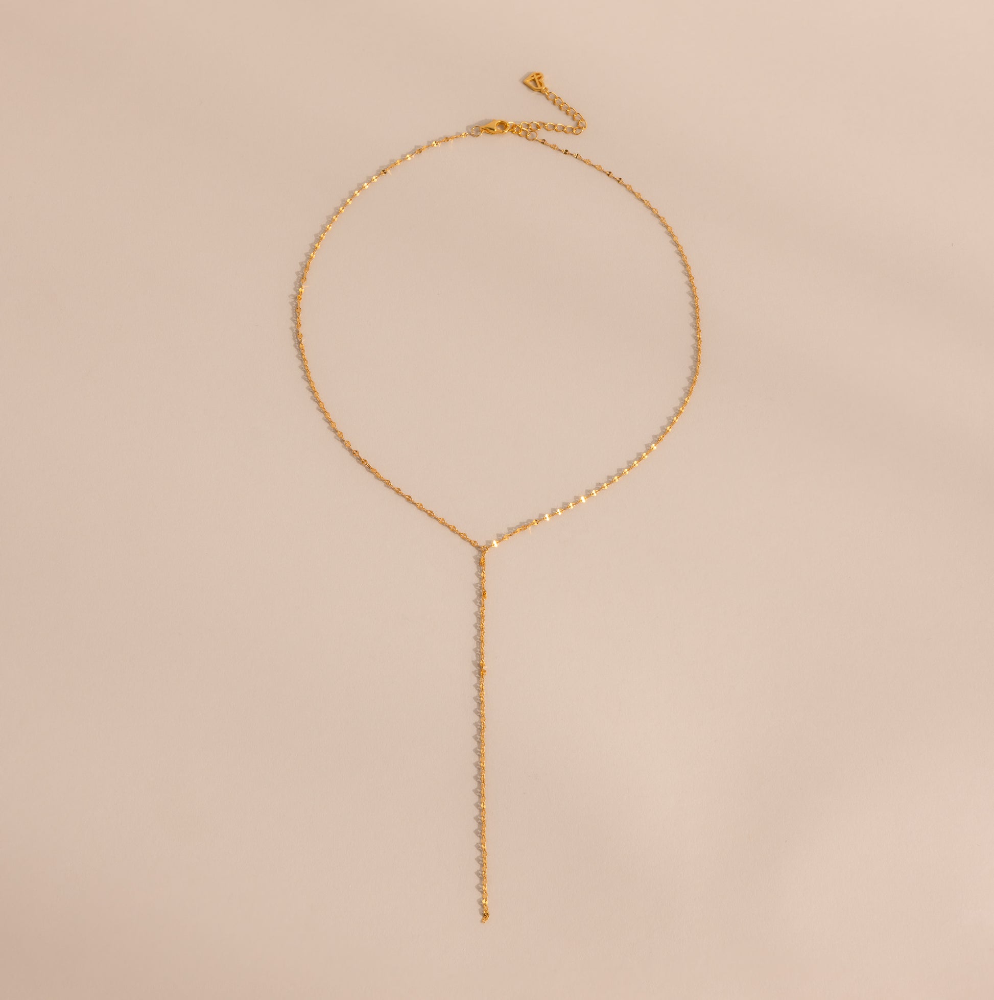 Effortlessly modern and refined, our Mirror Chain Lariat Necklace catches the light with its sleek, reflective finish. Lightweight and versatile, it layers beautifully or stands alone as a subtle yet striking statement.