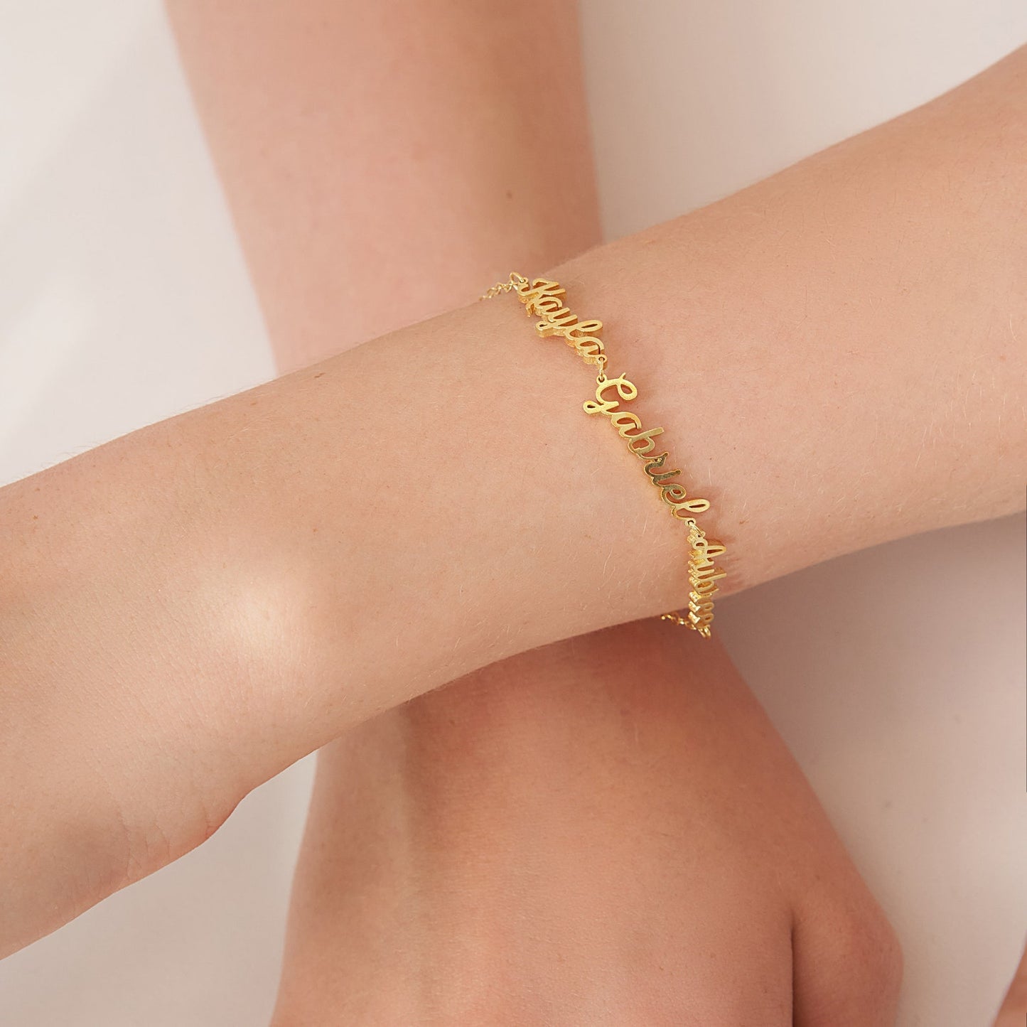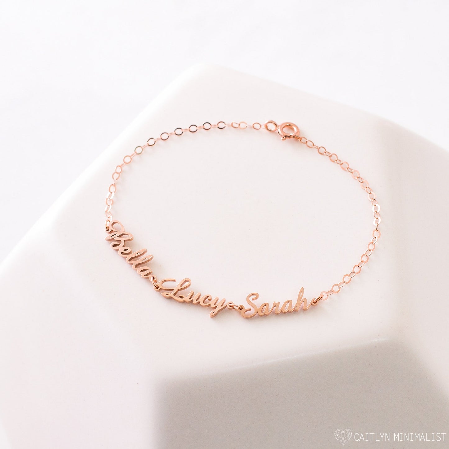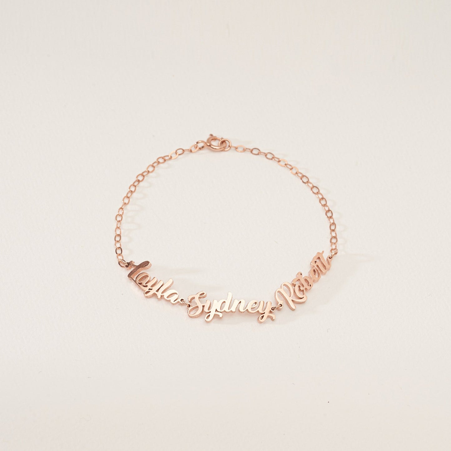 The Multiple Name Bracelet is a great way to include the names of all your close loved ones on a single dainty chain! Showcase your nearest and dearest in a cute and touching way.