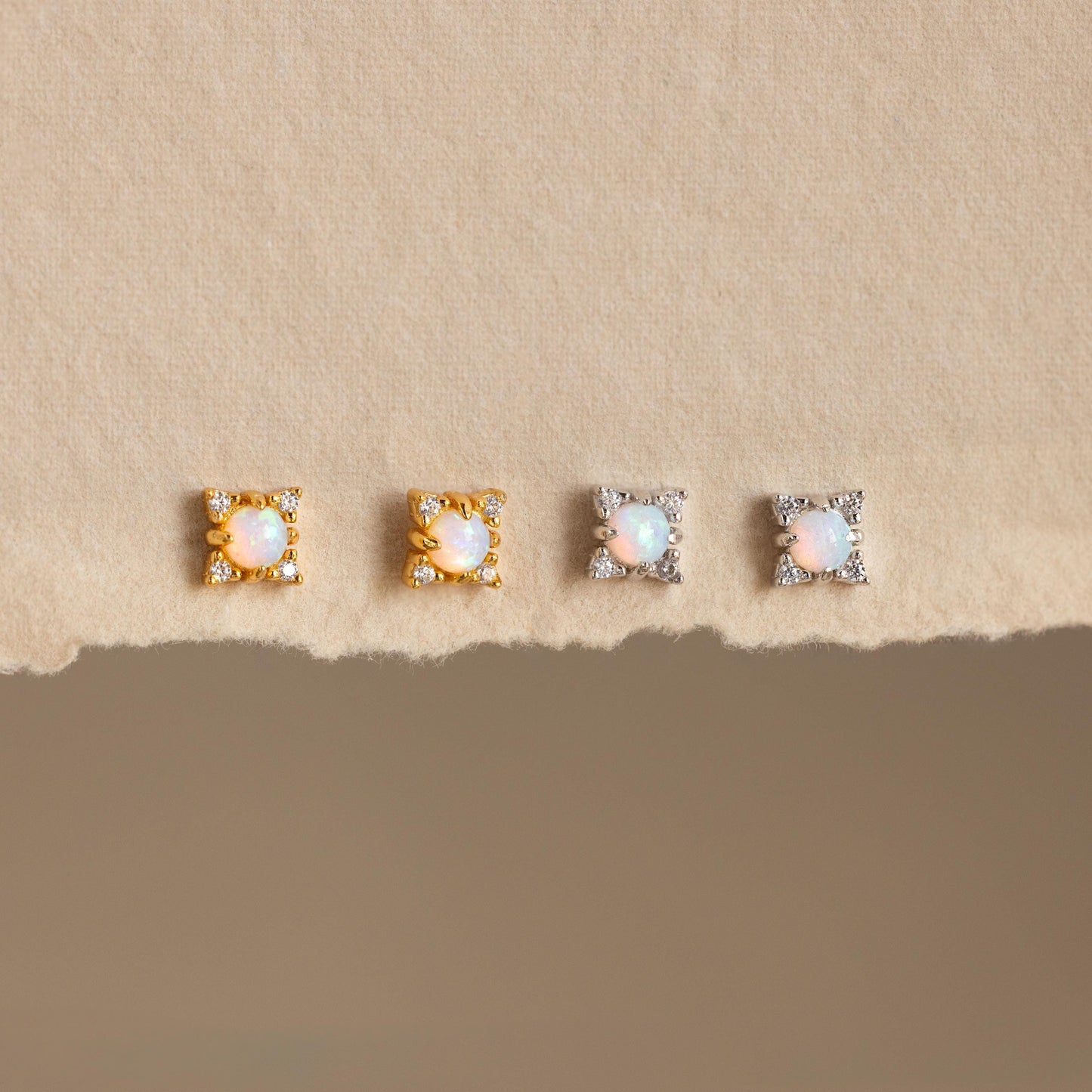 • Featuring ~3mm Opal CZ Gemstone Stud Earrings with ~1mm CZ Diamonds | Gauge: 21