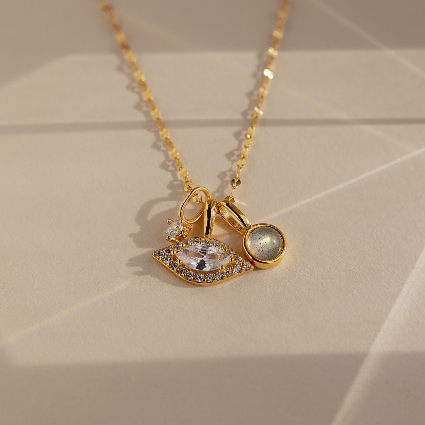 Elevate your jewelry with our Pave Eye Charm, featuring shimmering CZ diamonds in a mystical eye design. Whether added to a necklace or bracelet, this tiny treasure brings a touch of charm and intrigue to your look.
