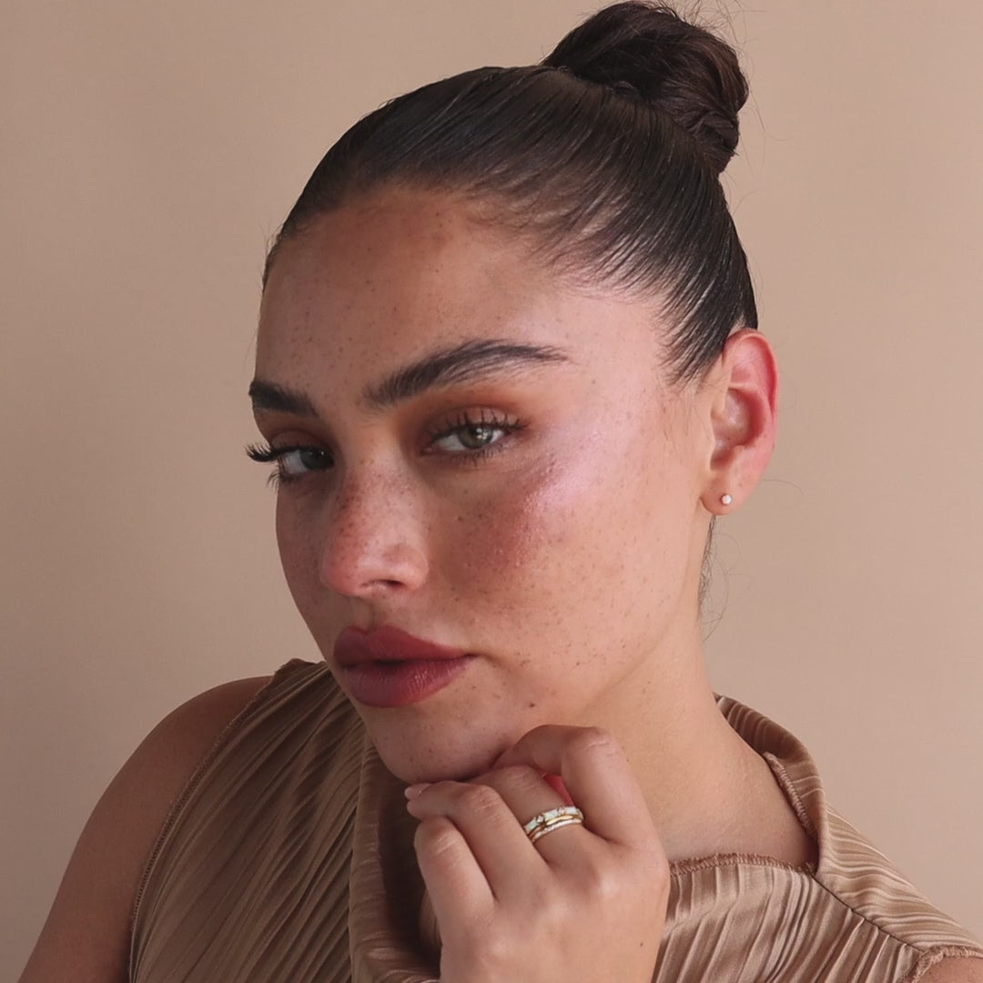Our Pave Opal Ring Set is one to wear for years to come. Its timeless design is easy to either stack together or style on their own. Deck yourself out with this everyday ring set anywhere the day takes you, from a business meeting in the morning to a concert at night.