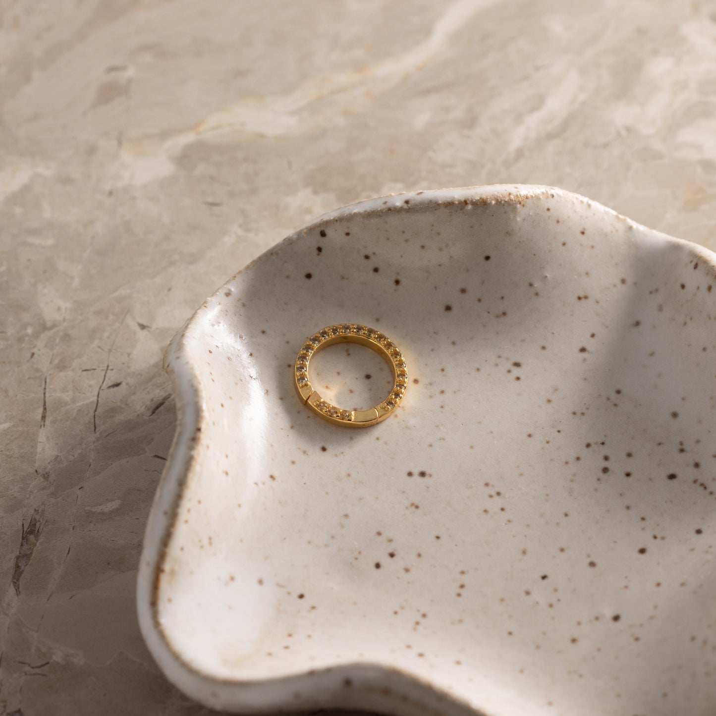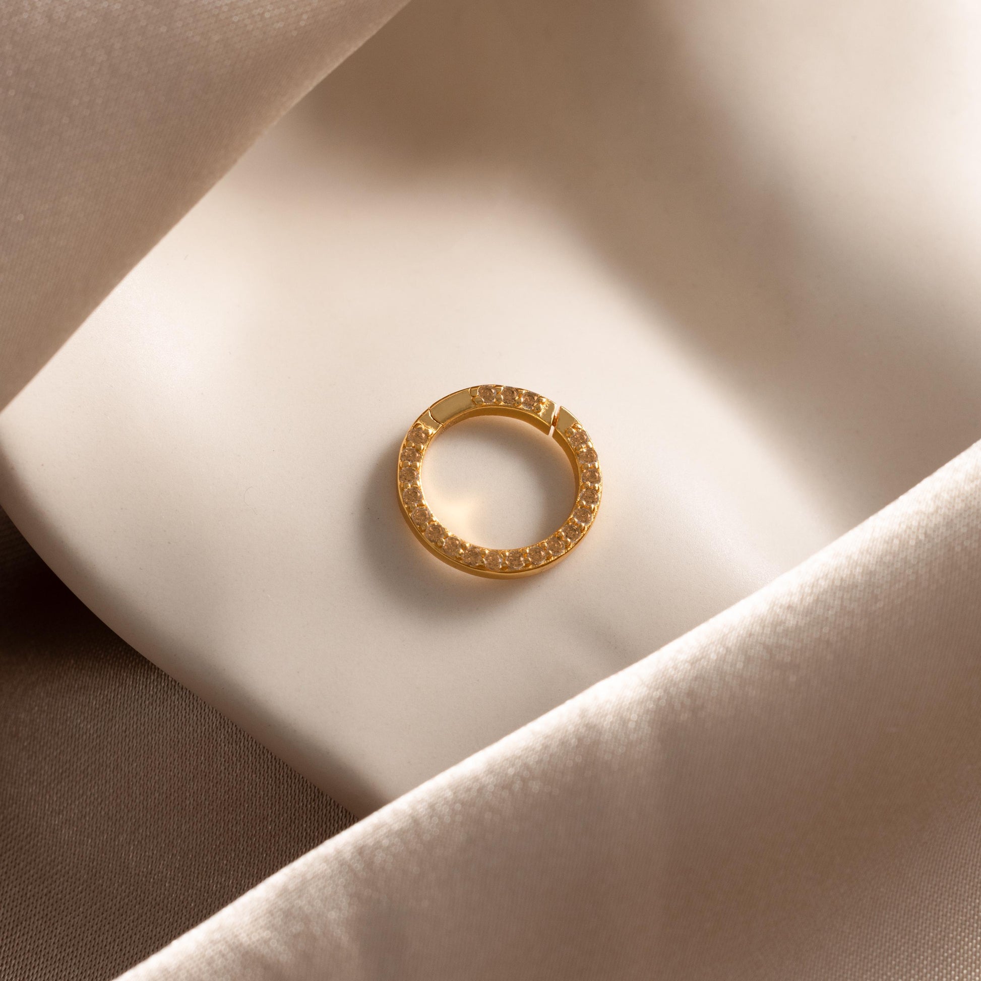 Our Pave Birthstone Ring Charm Clip is a dazzling way to personalize your jewelry. Designed as an open ring, it slips effortlessly onto your favorite chain necklace or bracelet, serving as a holder for your other charms. Customize it with a birthstone to celebrate a special anniversary or add a meaningful sparkle to your collection!