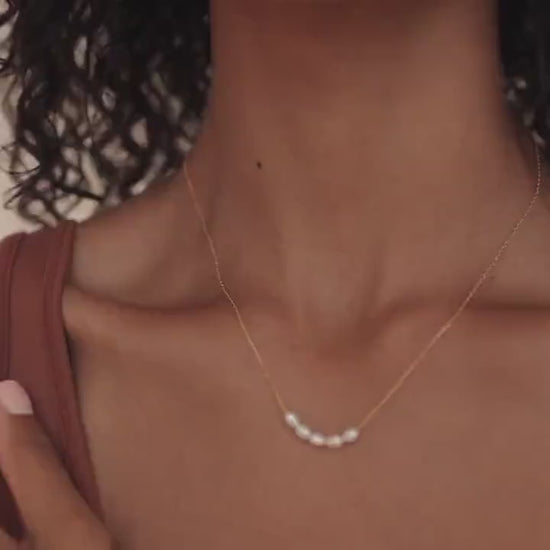 Beautiful, oval-shaped pearls are strung along a thin chain to form this classically feminine necklace. The Pearl Bead Necklace pairs wonderfully when stacked with our Baroque Pearl Necklace and is a perfect bridesmaids or Mother's Day gift.