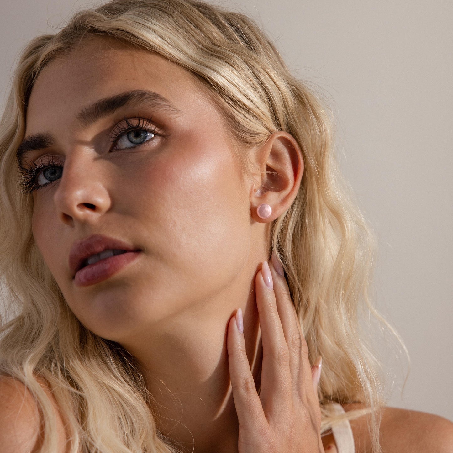 • Dimensions: 6mm Pink Pearls | 10mm Post | 22 Gauge
