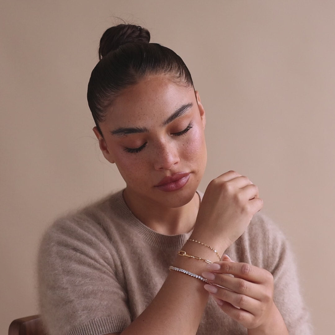 Our Round Diamond Tennis Bracelet features bold 3mm diamond gemstones that add extra dazzle to a classic design, making it a perfect statement piece for any special occasion ♡ Elegant and timeless, this diamond bracelet is the ideal gift, whether for a bride on her special day or a mother on a lunch date.
