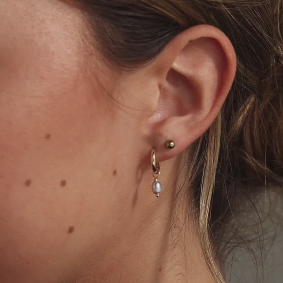 Elevate your evening fit with our Smokey Pearl Drop Huggies, blending sophistication with mystique. These huggie hoop earrings project subtle glamour, featuring a lustrous dangling light gray pearl charm, perfect for adding an elegant touch to any night out.