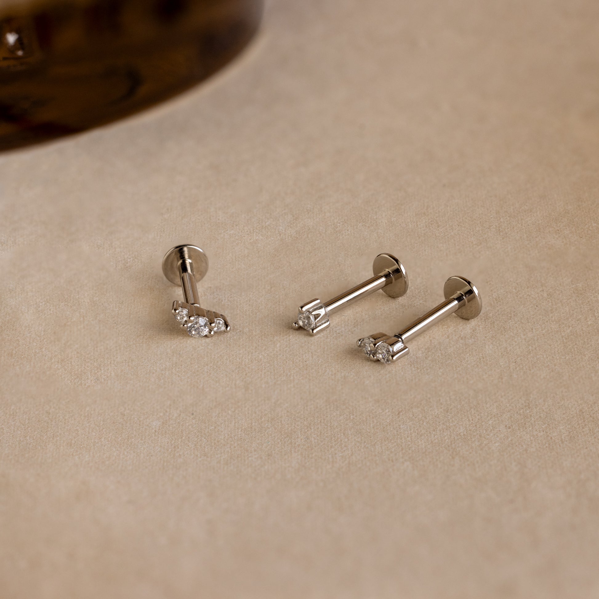 • 3) 5.5mm Cluster Stud with two 1mm CZ Diamonds surrounding one 2mm CZ Diamond Stone | Gauge: 18