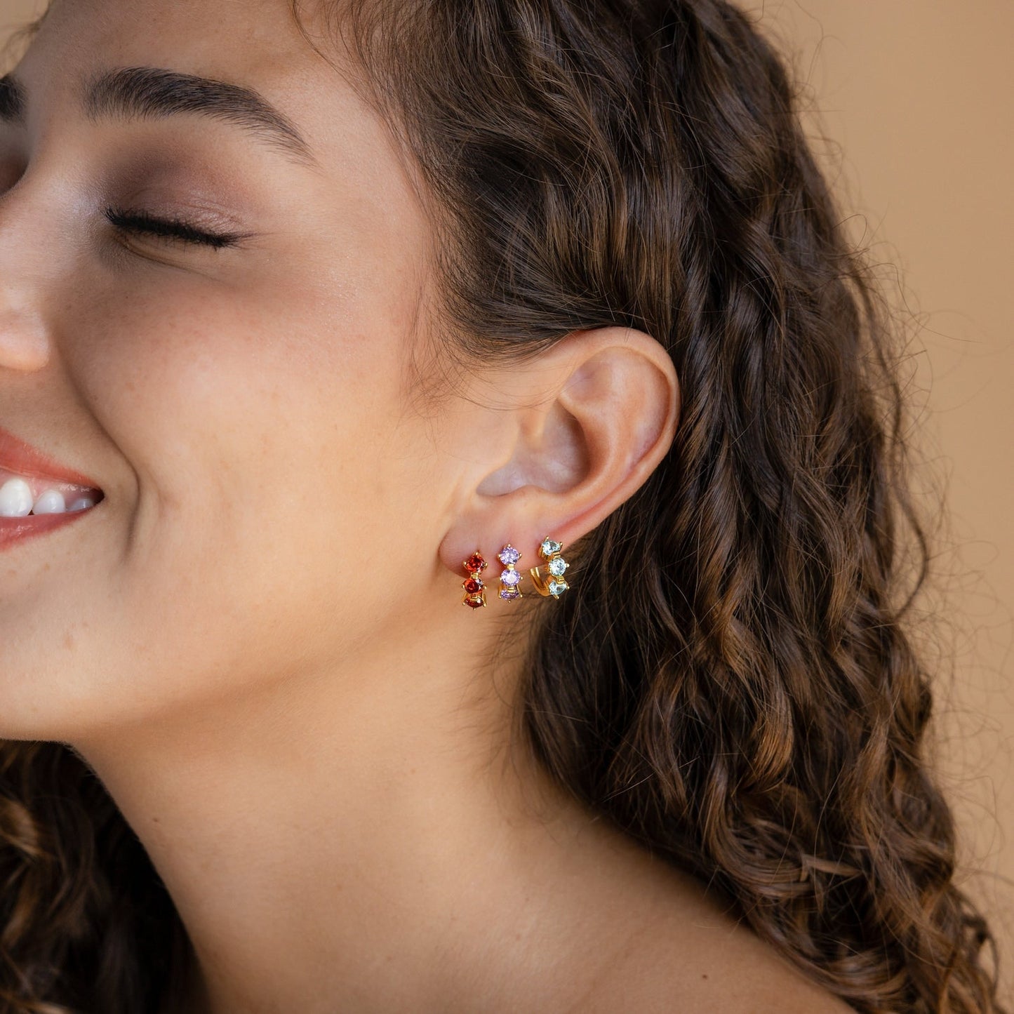 Add a touch of personalized charm to your jewelry collection with our minimalist Triple Birthstone Hoop Earrings ♡ These delicately crafted hoops showcase stylish 4mm gemstones, customizable with 12 different stone colors from each birth month ✨