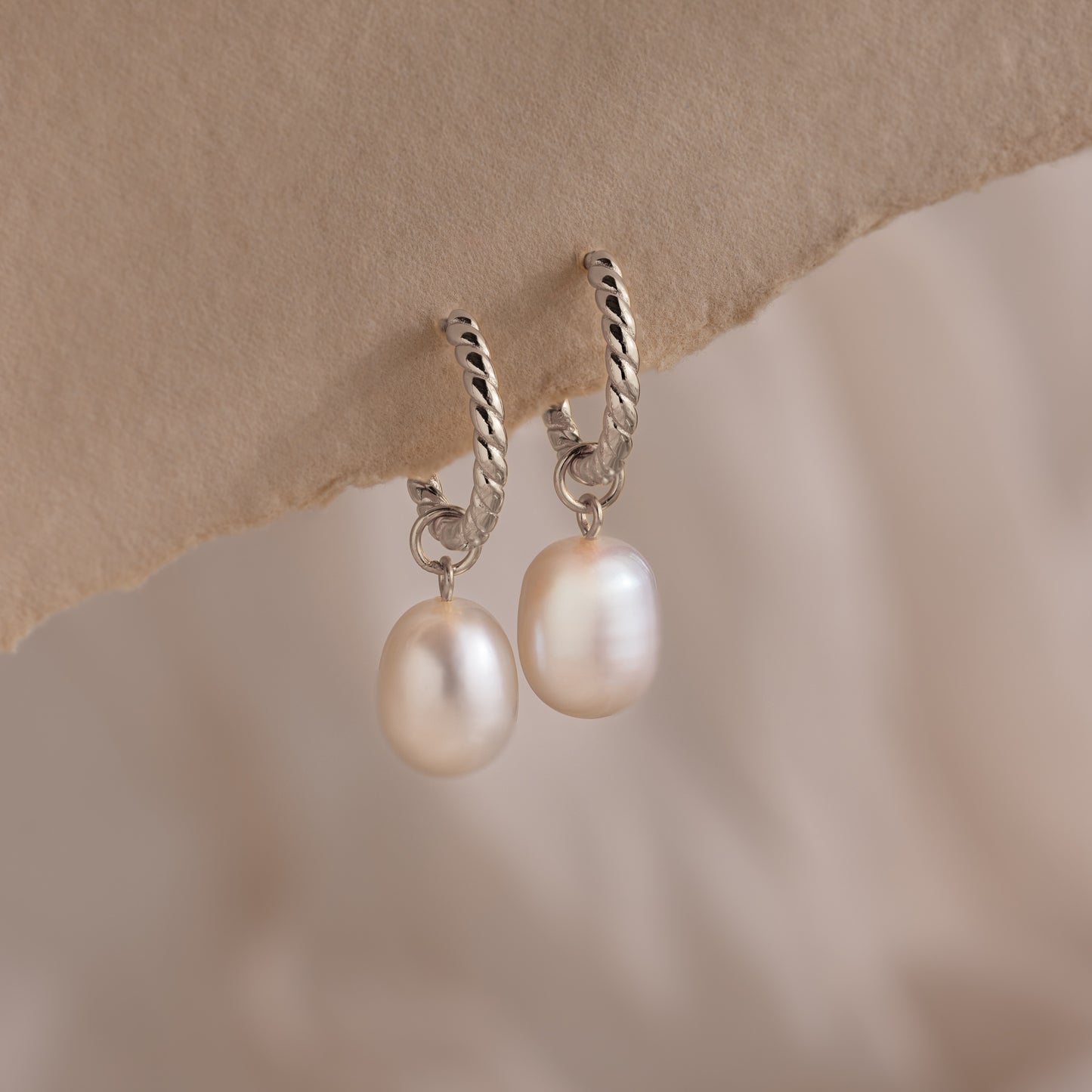 Add a modern twist to classic elegance with our Twisted Pearl Hoops. Featuring spiraled hoops and softly dangling oval pearls, these earrings offer a graceful silhouette that transitions effortlessly from day to night ✨